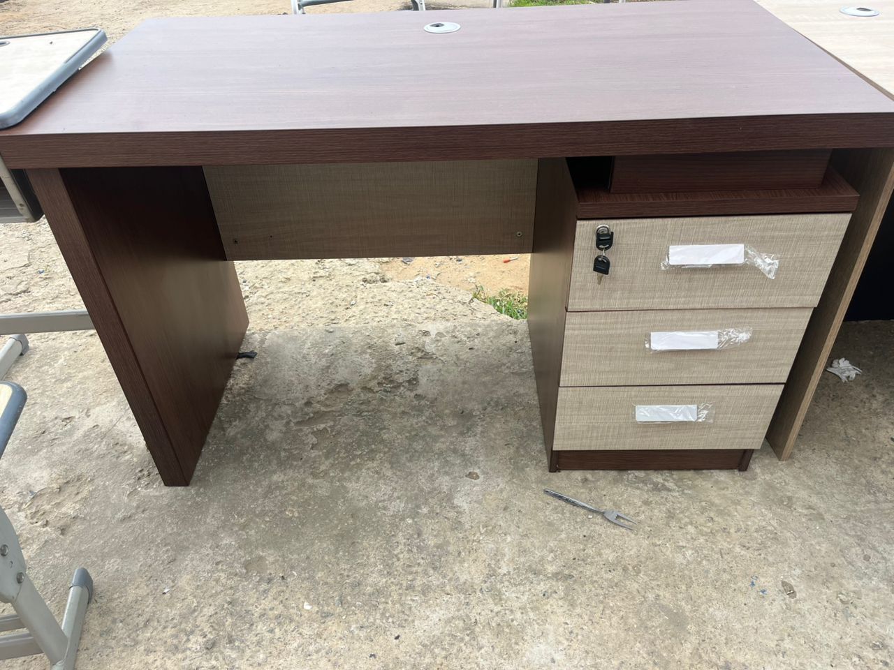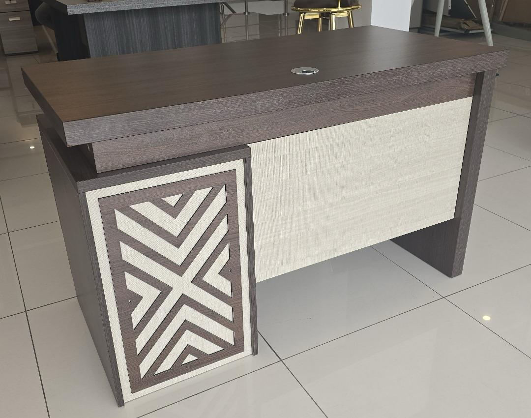 Le Bureau Patrimoine est destiné aux leaders visionnaires. Observez l'excellence dans chaque détail : le plateau effet bois sombre d'une épaisseur remarquable inspire la stabilité, contrastant avec la texture claire et rainurée de la jupe de modestie. Mais c'est le caisson ornementé qui fait toute la différence. Son motif géométrique exclusif, façonné avec précision, apporte une touche d'héritage culturel et de modernité qui vous distingue instantanément.