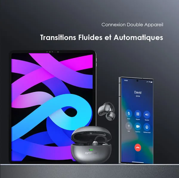 Activez la connexion double appareil via l’application oraimo sound. Passez automatiquement d’un appareil à l’autre en fonction des appels pour une écoute sans interruption.
