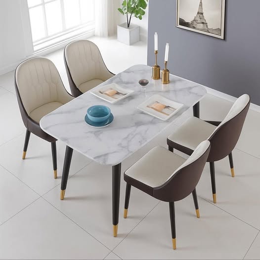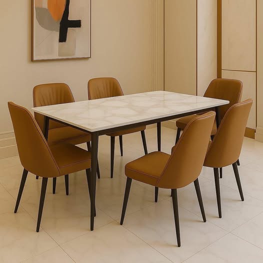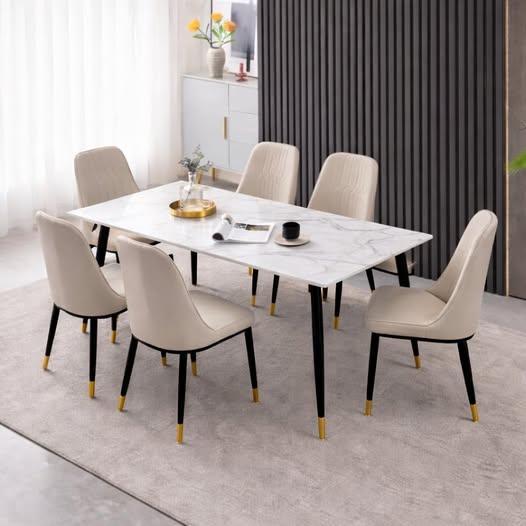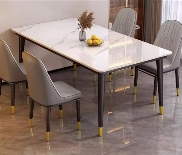 Et les chaises ? Un cuir gris doux avec un capitonnage texturé à l’arrière pour un confort de roi pendant les longs repas. Que vous soyez une famille de 4 ou de 6, on a ton modèle. C’est le chic à l’ivoirienne, pour les repas de famille ou les grandes réceptions. C’est propre, c’est solide, c’est convivial.