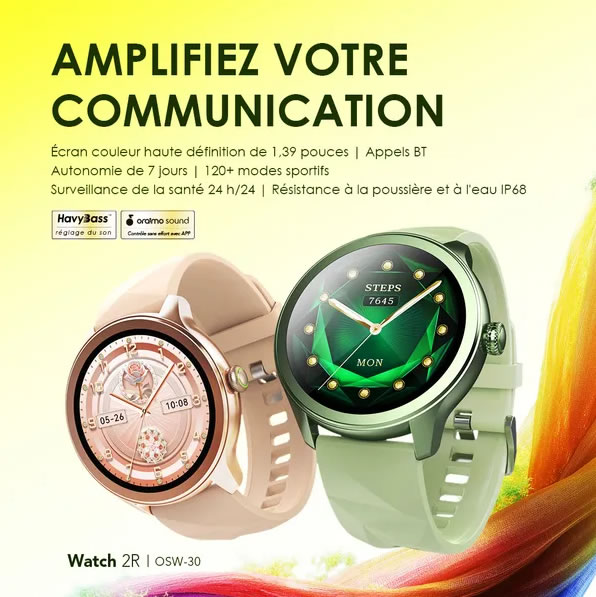 L’indice IP68 permet à cette montre de résister à la pluie et à la poussière. Performante dans divers scénarios tels que la plage, le désert et les sports nautiques, oraimo Watch 2R est l’accessoire idéal pour les amateurs de fitness et les aventuriers.