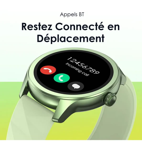 Prenez, passez et rejetez des appels directement depuis la montre à votre poignet, à tout moment et en tout lieu. La qualité audio HD garantit une conversation claire et naturelle, comme si vous parliez face à face. La puce BT garantit des connexions rapides et stables et une faible consommation d’énergie.