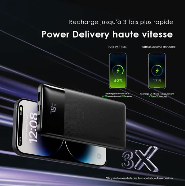 Toast 22.5 Byte : recharge un iPhone 16 jusqu’à 60% en seulement 30 minutes.