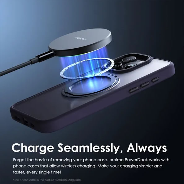 Oubliez l’ennui de retirer votre coque de téléphone. Le oraimo PowerDock fonctionne avec les coques de téléphone compatibles avec le chargement sans fil. Simplifiez et accélérez votre chargement, à chaque fois !